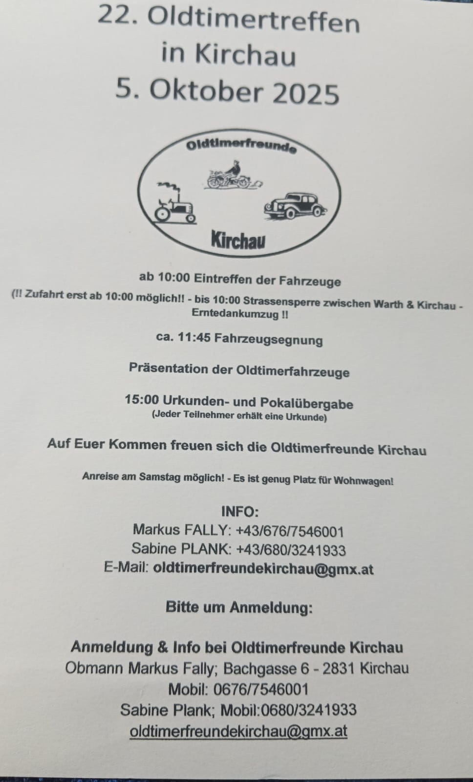 5. Oktober 2025 22. Oldtimer Treffen in Kirchau