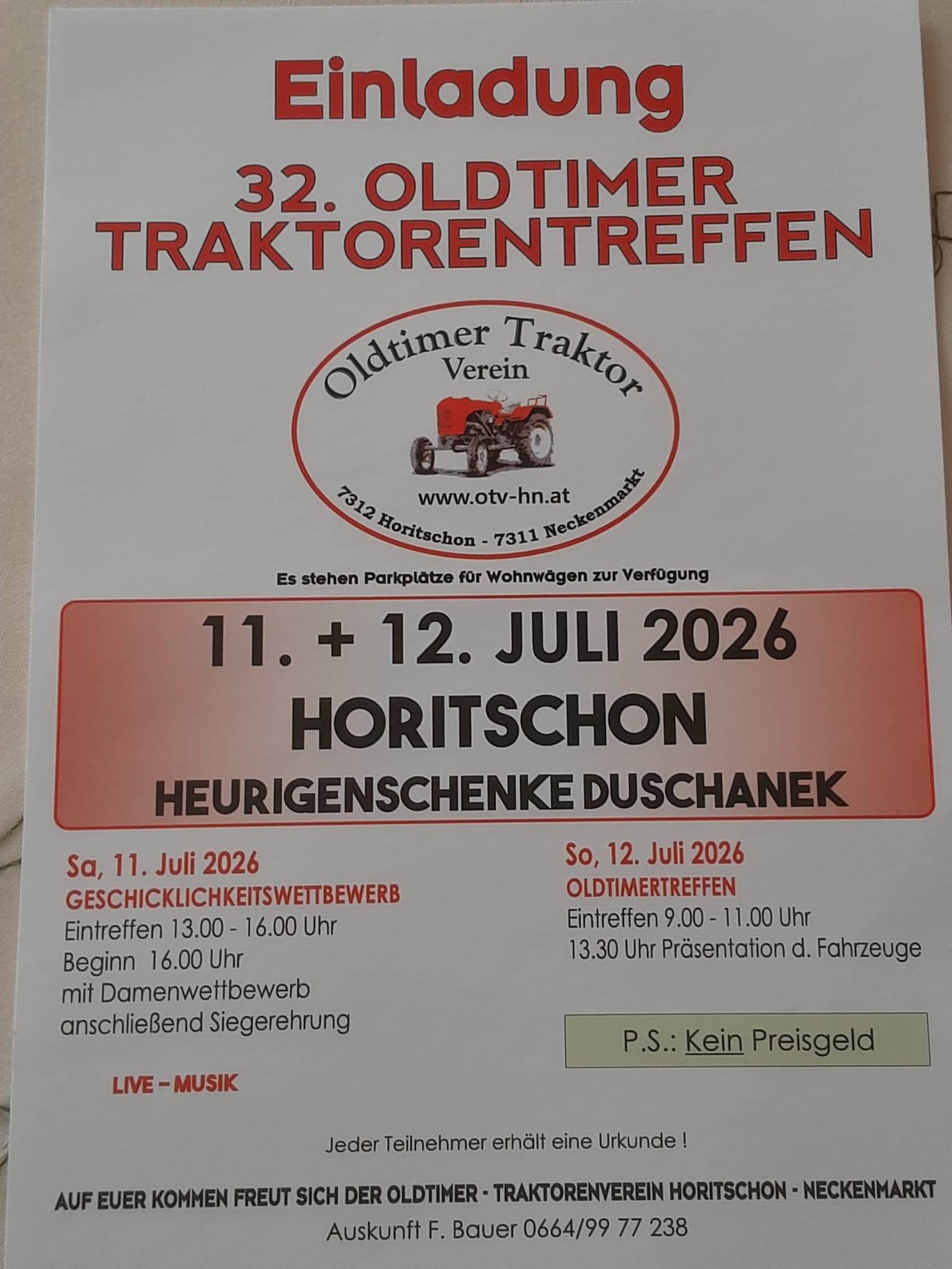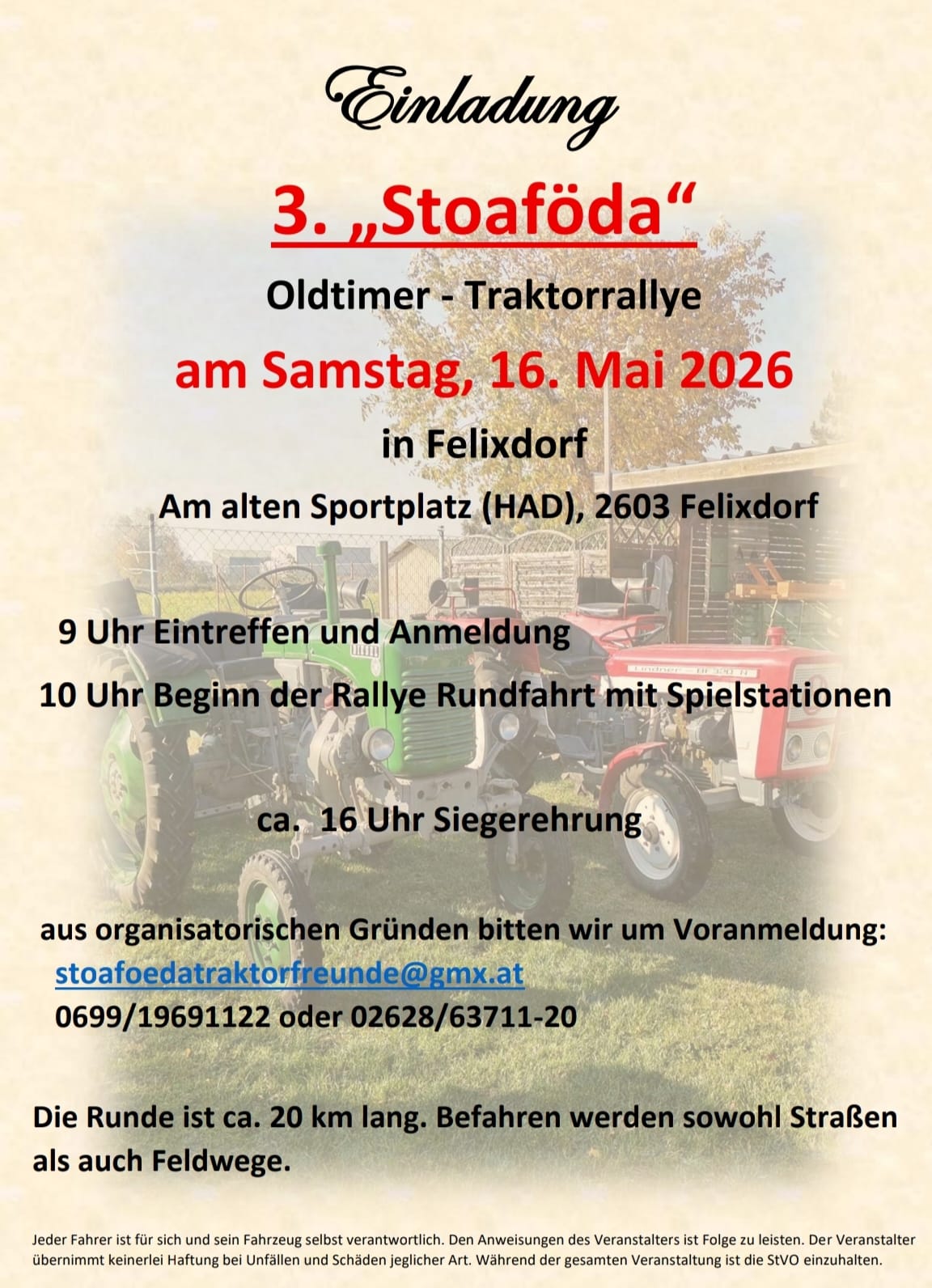 16. Mai 2026 3. „Stoaföda" Oldtimer - Traktorrallye